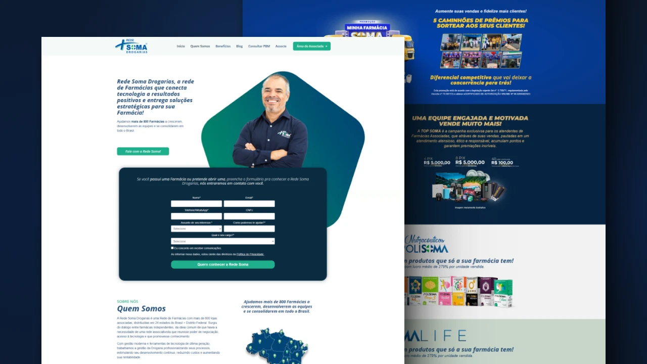 Estética e funcionalidade trabalhando juntas. Cada elemento do layout é pensado para destacar a marca, facilitar a navegação e conduzir o visitante até a ação desejada.