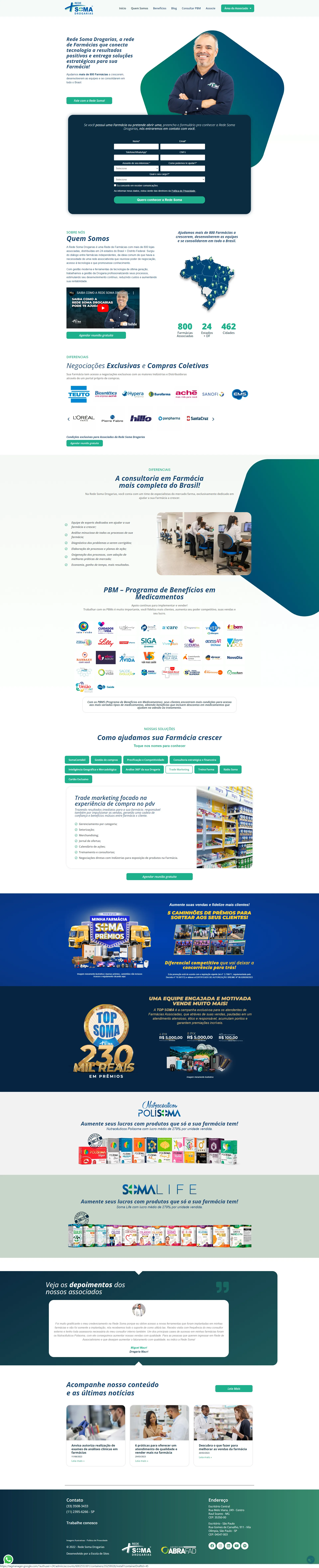 Desenvolvemos a landing page institucional com blog da Rede Soma Drogarias, uma associação que reúne mais de 860 farmácias em 23 estados do Brasil. O objetivo do projeto foi criar um site “simples” e funcional, que transmitisse a força da marca e sua proposta de crescimento coletivo para o setor farmacêutico.
